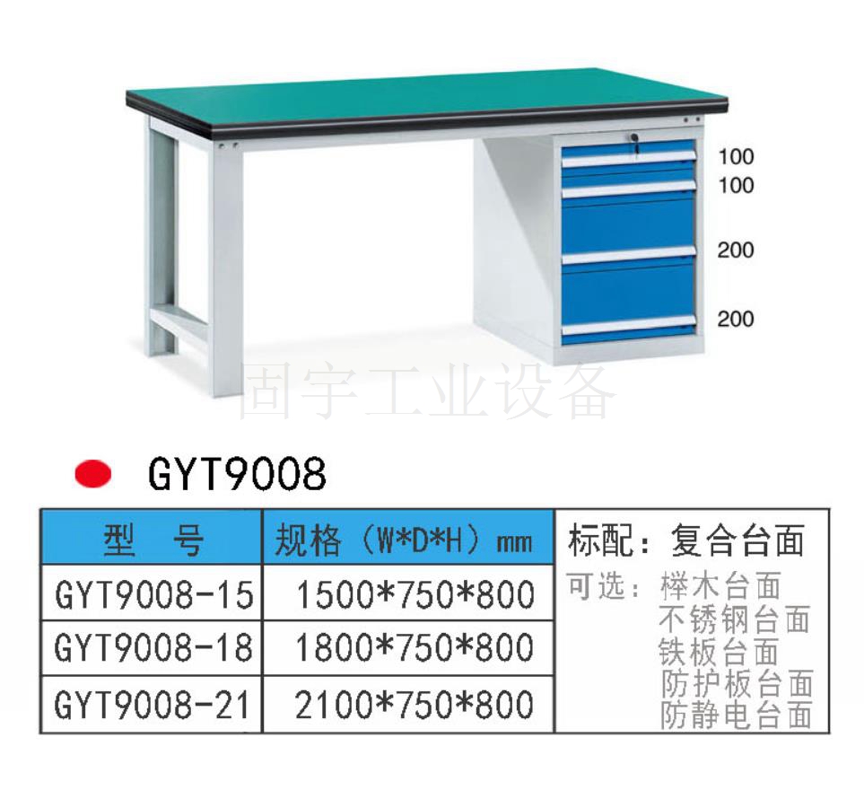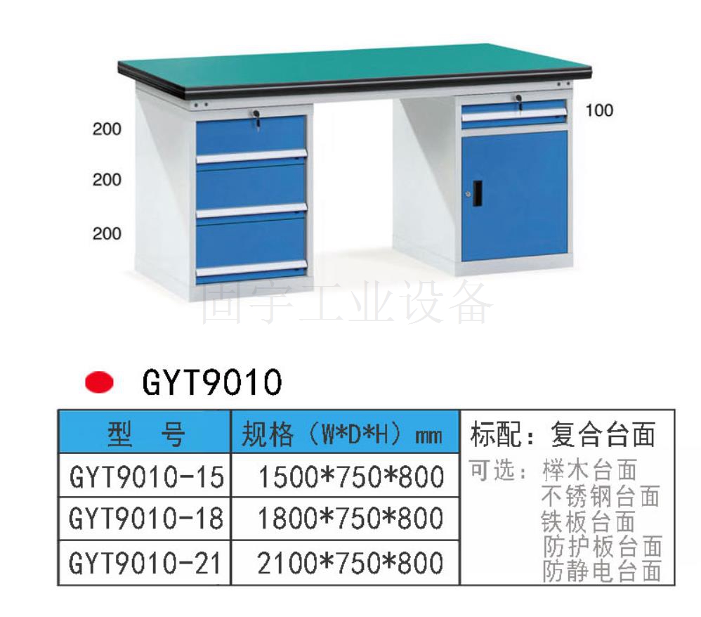 工作臺(tái)采用優(yōu)質(zhì)冷扎板精工制作而成,堅(jiān)固的工作桌框架,牢固平穩(wěn),可使工作桌承重1000kg;多種工作桌面選擇,可配合不同使用的要求;工具吊柜(箱),側(cè)柜(箱)燈架,調(diào)節(jié)腳杯,,外形美觀;層板,抽屜質(zhì)量上乘,承重大,抽屜內(nèi)可根據(jù)需要任意分隔;節(jié)約空間,適用性強(qiáng)。 范圍 工作臺(tái)適合于模具、鉗工、檢測(cè)、維修、組裝等各種不同應(yīng)用場合,具有良好的耐腐蝕性,耐臟性,抗沖擊性和承重能力強(qiáng)。桌面經(jīng)特殊處理,具有防腐、抗沖擊力強(qiáng)等特點(diǎn),多種桌面的選擇,可配合不同的使用要求;所配置的抽屜、柜門方便使用者存儲(chǔ)工具;桌角上預(yù)留電源孔,方便安裝電源插座。工作臺(tái)(桌)分為輕型(可承重300公斤),中型和重型工作臺(tái)(桌)可承重1000公斤及特制的工作臺(tái)。可根據(jù)需要靈活地配置各種吊柜、單柜、雙柜等,可加裝掛板,電器板,燈頂板、調(diào)節(jié)腳杯,輪子,擱板等桌上部件,具有多種選擇,能夠滿足各種工位的需求。 工作臺(tái)材質(zhì)采用優(yōu)質(zhì)冷軋鋼板,表面采用靜電噴涂處理而制成,堅(jiān)固的工作桌框架,牢固平穩(wěn),可使工作桌臺(tái)面均勻承重達(dá)到1000kg。桌面有多種材質(zhì)組成,適用于各行業(yè)辦公場所。可配合工具柜,吊柜,掛板,單開門柜使用。抽屜、承辦承重大,性能好,抽屜里可根據(jù)需求配置分隔條 工作臺(tái)分類:根據(jù)臺(tái)面的不同分為:櫸木工作臺(tái)、鋼板合成工作臺(tái)、防靜電工作臺(tái)、高分子工作臺(tái);根據(jù)承重的不同分為:輕型工作臺(tái)、中型工作臺(tái)、承重型工作臺(tái);根據(jù)功能的不同分為:多功能工作臺(tái)、帶吊柜工作臺(tái)等等。 臺(tái)面優(yōu)勢(shì) 復(fù)合臺(tái)面特性臺(tái)面平整度高,撓曲度為0.8mm。表面2mm厚度為高分子材料,使臺(tái)面耐酸堿、耐磨、耐油。臺(tái)面采用高壓纖維板,使臺(tái)面更具有抗沖擊性。特別的圓弧桌角,不易受撞擊損壞。高強(qiáng)度塑膠包邊堅(jiān)固、實(shí)用、不易損壞、不易脫落。櫸木桌面特性桌板使用櫸木與防水膠經(jīng)加壓制造而成。表面光滑平整,美觀不易變型,耐油、耐熱、耐酸、耐堿,適合一般工廠作業(yè)與精密模具維修,儀器置放與檢測(cè)等用途。不銹鋼包面特性桌板使用高壓合成板,表面包1-2mm砂面不銹鋼板,以達(dá)美觀耐用。耐高溫、耐磨損、耐油、使用壽命長,為多功能桌板,適合一般工廠、食品業(yè)、研究室、電子廠無塵室使用。輕型工作臺(tái)可承重300kg-500KG防火板臺(tái)面特性輕巧、美觀、耐磨、防火。層壓板臺(tái)面特性工作桌面平整,變型小,強(qiáng)度高,抗沖擊性好。 標(biāo)準(zhǔn)顏色 產(chǎn)品顏色 標(biāo)準(zhǔn)的顏色可分為6種:淺藍(lán)色(RAL5015), 電腦灰(RAL7035), 機(jī)床綠(RAL6011),深藍(lán)色(RAL5017)。